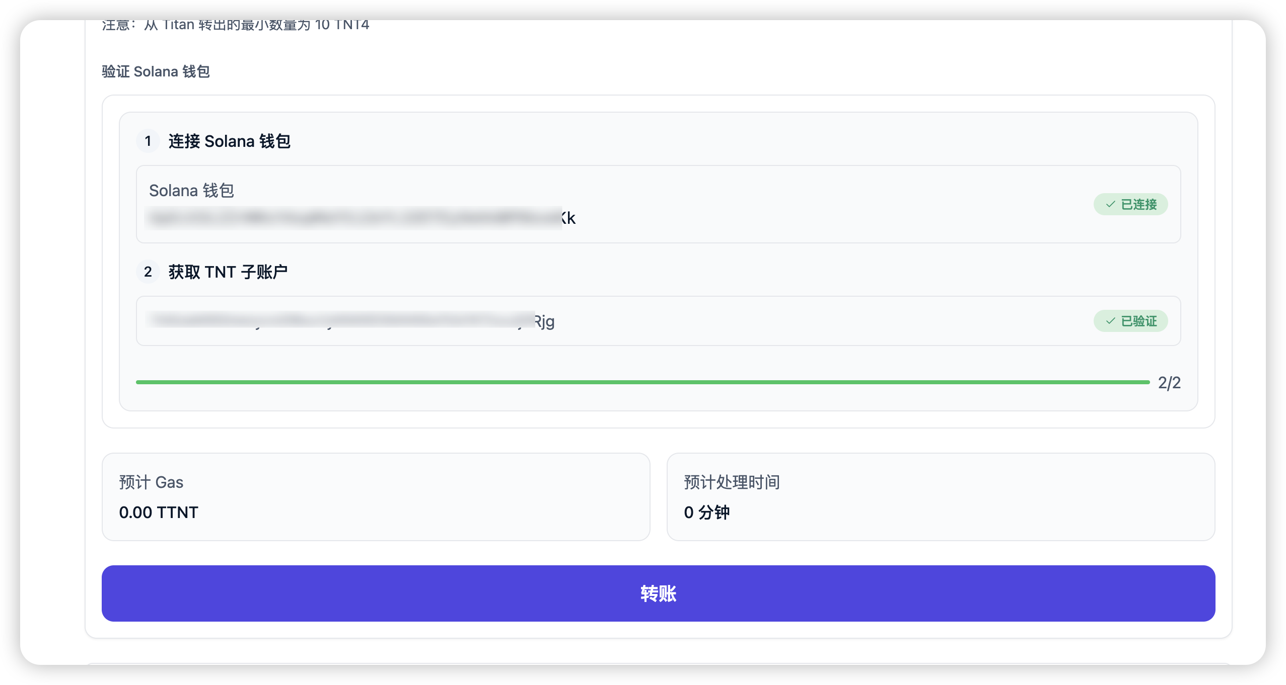 # 如何将 TNT4 跨链转账至 Solana 网络