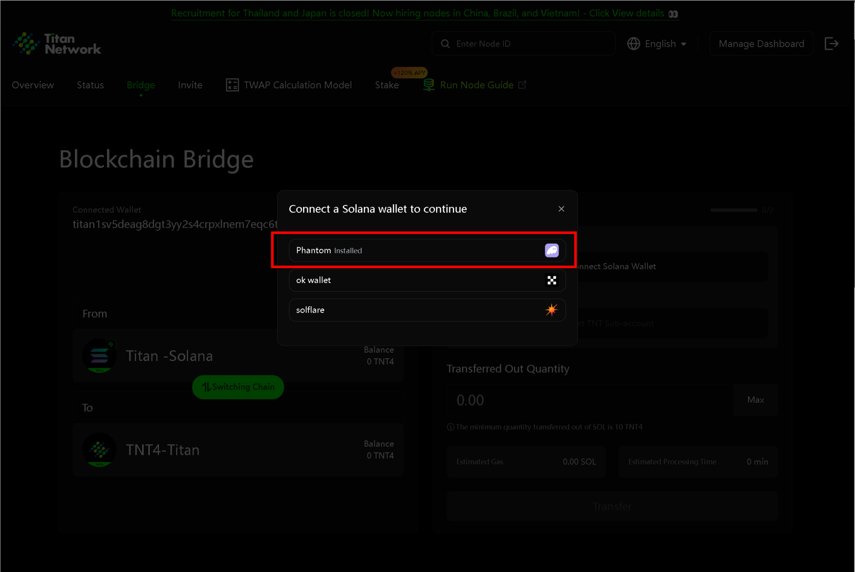 # How to Transfer TNT4 from Solana to Titan Chain​